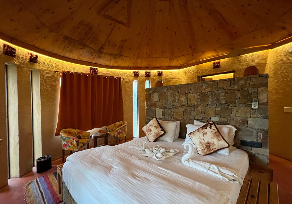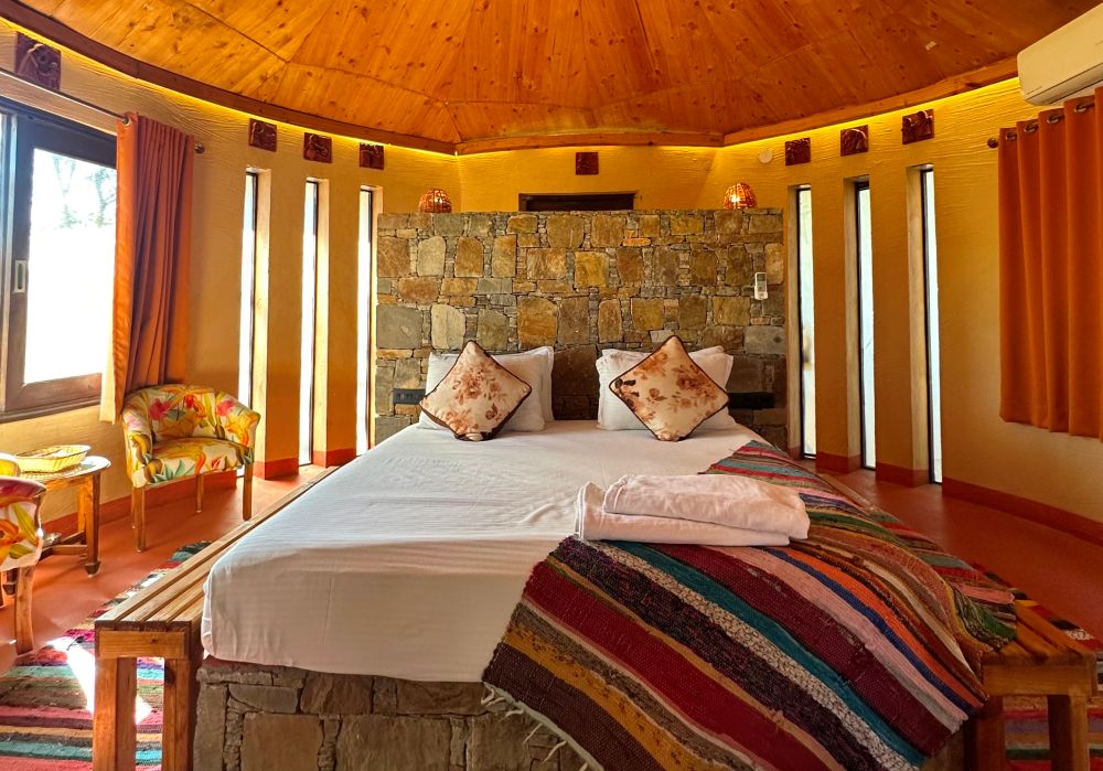 Bella Basera in Kumbhalgarh offers a distinctive retreat with vibrant mud huts and elegant stone cottages, each featuring breathtaking views of the Aravali Hills and Kumbhalgarh Fort. Enjoy adventure activities, local culture, and fresh, farm-to-table dining amidst serene landscapes.